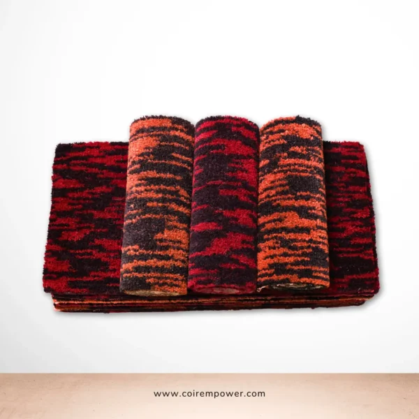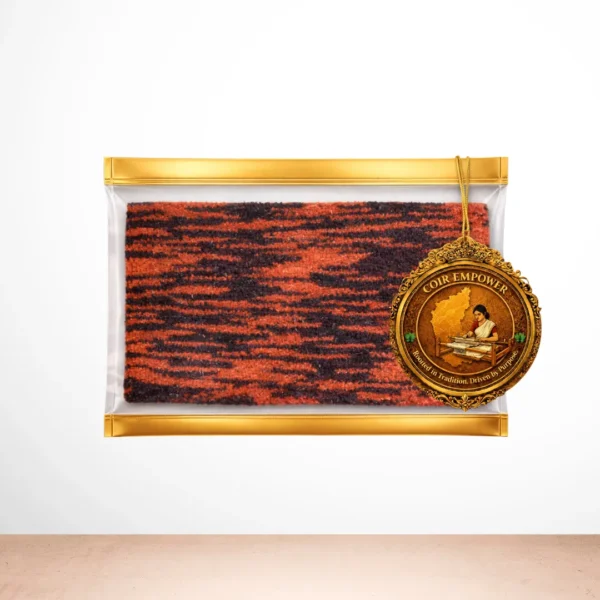 Designed for everyday utility and long-lasting performance, this natural coir doormat is crafted from coconut fibre and finished in an earthy red and black pattern that blends durability with understated design. Ideal for Indian home entrances, it effectively traps dust while adding a natural touch to your space.
