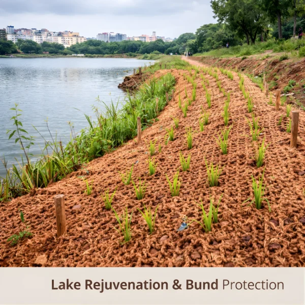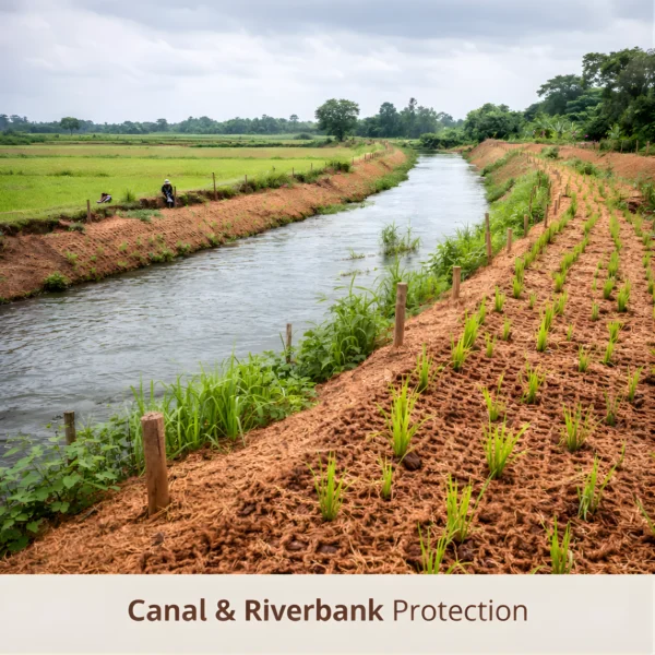 Coir Geo-Textile is a natural, biodegradable erosion-control fabric made from high-quality coconut coir fibres. Designed for soil stabilisation and ecological protection, it is widely used in infrastructure, agriculture, landscaping, and environmental restoration projects across Karnataka and India.